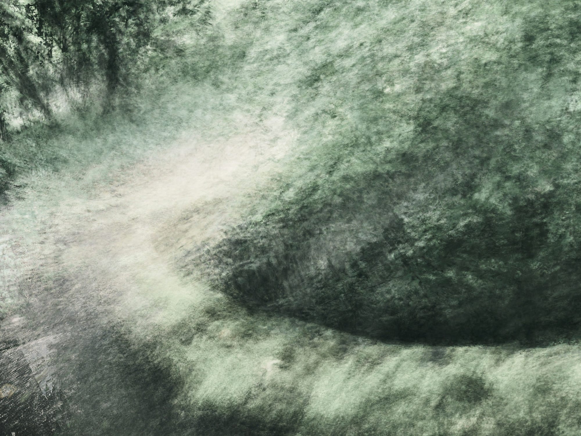 I started with subjects that were contemporary archaeological “ruins”. A 150 year old winch, a barracks from the first world war that is disappearing into the forest. The important element is that there’s a trace of structure there. Something recognisably un-natural which, depending on how I stack these images, will come through in the final result.